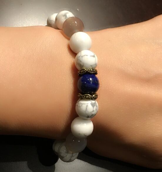 10mm玉のハウライトと深海のような深いブルーのラピスラズリ、